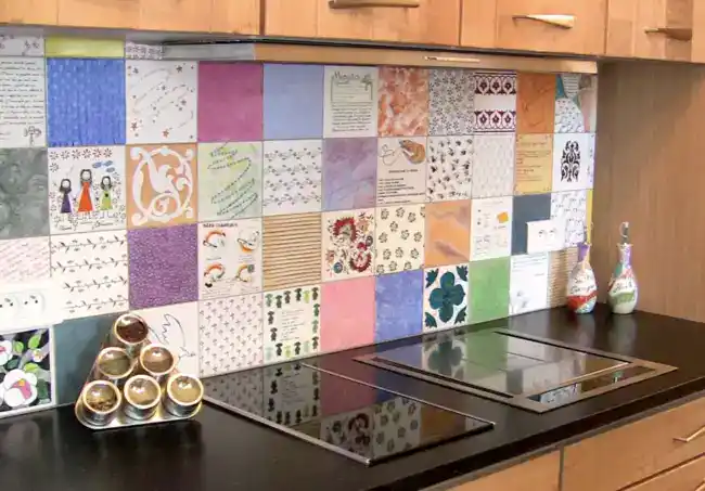 - Cuisine personnalisée par des carreaux de faïence peint dans un style patchwork (PRIX SUR DEVIS).